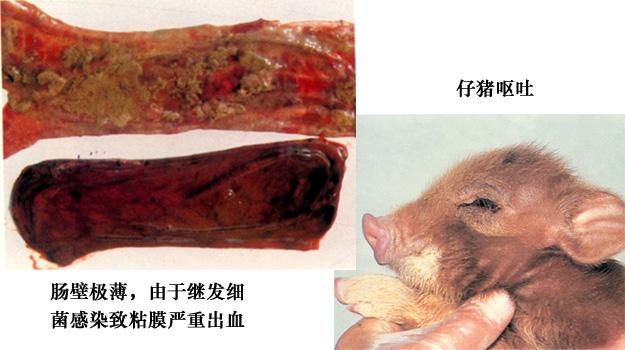 當(dāng)泌乳母豬發(fā)病后泌乳量會(huì)大大下降,致使哺乳仔豬得不到充足的乳汁,仔豬營(yíng)養(yǎng)會(huì)嚴(yán)重失調(diào),仔豬的病情也會(huì)愈發(fā)嚴(yán)重。在臨床中,某些仔豬發(fā)病前先呈現(xiàn)體溫升高,隨后發(fā)生腹瀉,體溫又下降的情況。隨著日齡增長(zhǎng),仔豬病的死率逐漸降低。