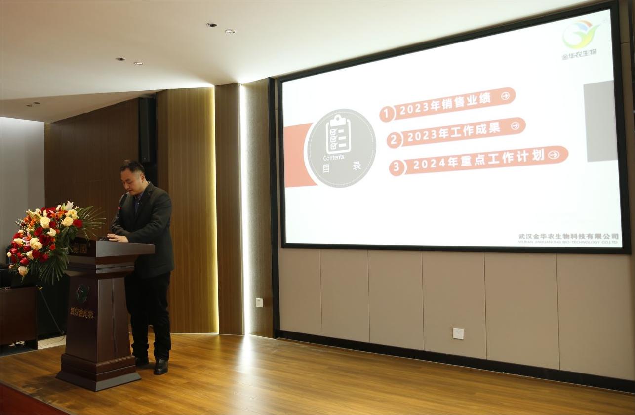 ? ? ? ?辭舊迎新、筑夢(mèng)前行,2024年1月9日~12日,武漢金華農(nóng)生物科技有限公司2023年度工作總結(jié)暨優(yōu)秀表彰大會(huì)在公司行政大樓報(bào)告廳隆重舉行。來(lái)自華中農(nóng)業(yè)大學(xué)的院系領(lǐng)導(dǎo)和專家教授、省獸藥監(jiān)察所行業(yè)主管負(fù)責(zé)人、公司領(lǐng)導(dǎo)及部門主管、近30個(gè)省市的市場(chǎng)精英代表逾百人齊聚盛會(huì)。