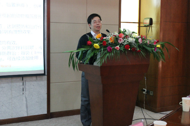 ? 12月10日下午,華中農(nóng)業(yè)大學(xué)人事處龍健飛處長出席公司年終工作總結(jié)大會。會議上,龍?zhí)庨L對公司所取得的成績表示由衷的祝賀,同時,以鑄就華農(nóng)獸藥“金字招牌”的目標(biāo),向公司全體員工提出了更高的要求。