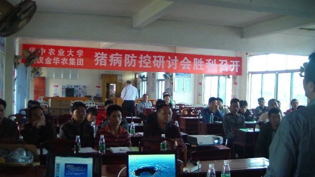 ?“豬是養(yǎng)大的,不是治大的?!?/span>4月28日,武漢金華農(nóng)生物集團公司春夏季豬病防控專題研討會在廣東三個重點養(yǎng)殖縣市同時勝利召開,公司專家團隊、技術部服務人員、廣東省大區(qū)黎經(jīng)理與來自全省的150多家規(guī)模化養(yǎng)殖場負責人以“高效養(yǎng)殖模式、健康用藥理念”為主題,進行了專題研討學習與經(jīng)驗交流。
